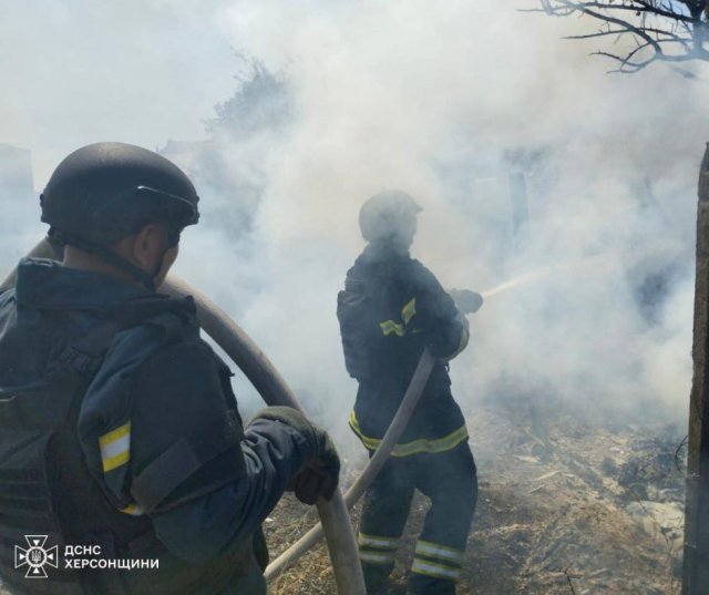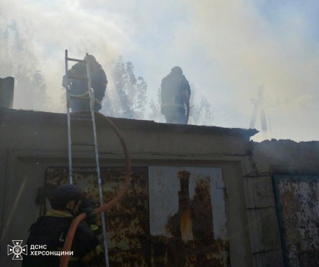 Від влучань ворожих боєприпасів в населених пунктах області та в м.Херсон горіли житлові будинки, господарчі споруди, гаражні приміщення та автівка.