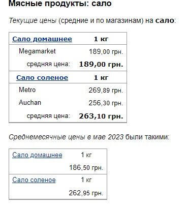 У червні порівняно з травнем зросла ціни як на домашнє, так і на солоне сало. Домашнє подорожчало з 186,50 грн/кг до 189,00 грн/кг, а солоне – з 262,95 грн/кг до 263,10 грн/кг.