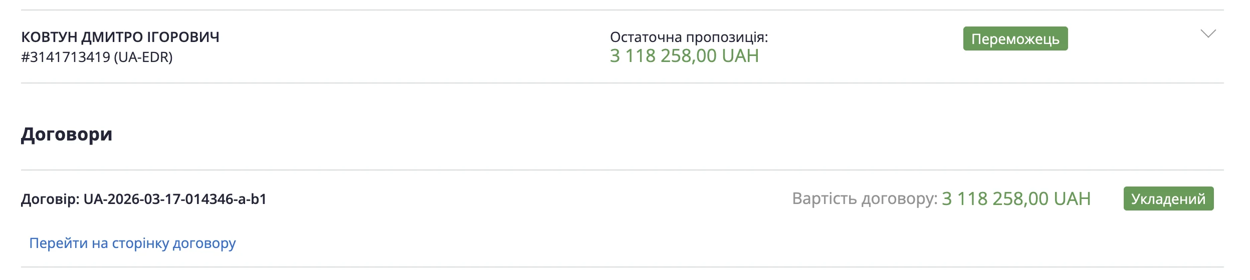 Наступні два договори вартістю 2,9 та 4,3 млн грн уклали з підприємцем з Херсона Олексієм Тройняковим.