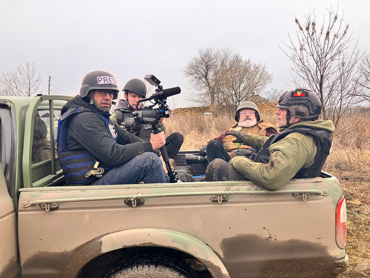 Пол Конрой і Джордж Ллевелін у Херсоні під час зйомок, грудень 2023 року