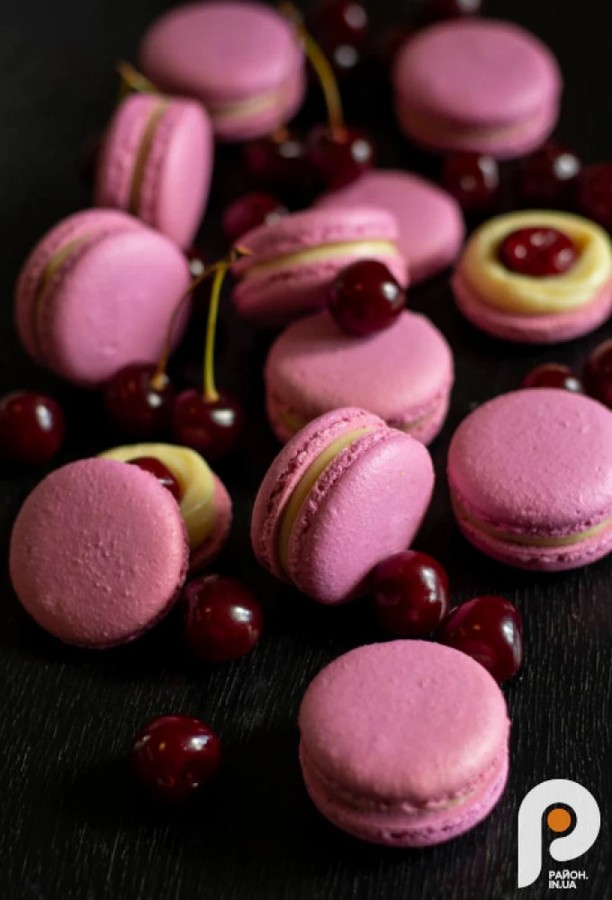 Макарон з вишневим смакомВ окупації кондитерка створила макарон зі смаком полуниці з жовто-блакитними кришечками. Вона пригадує, що люди розгрібали їх, але задля безпеки називали «райдужними».