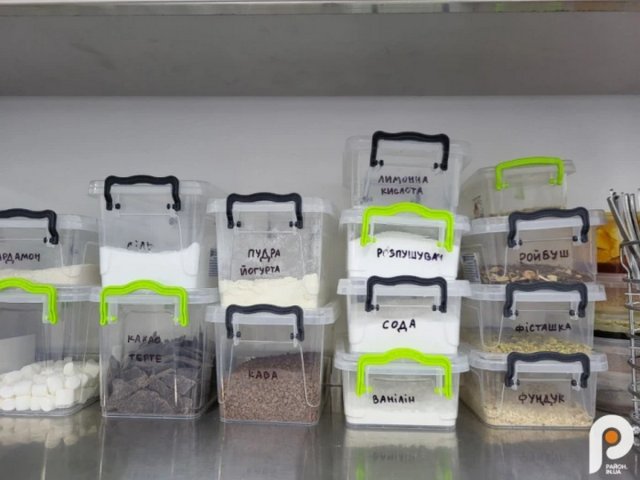 На полиці в контейнерах зберігають різноманітні прянощі. На холодильниках – планери із замовленнями. Попри те, що стіни білі, в приміщенні панує атмосфера тепла й затишку. Тут випікають макарони.Але так було не завжди.