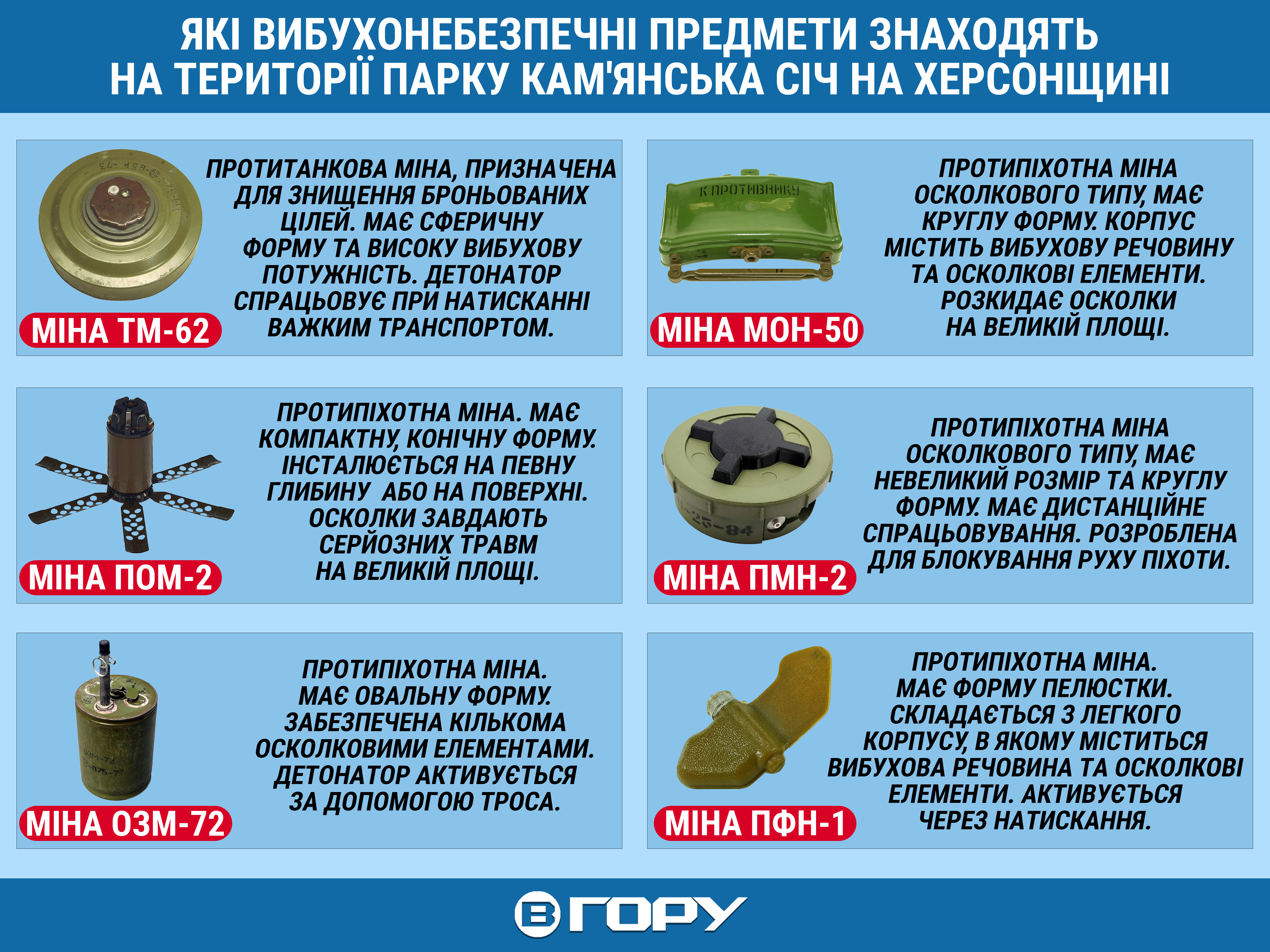 Протипіхотні міни в парку. Фото: Національний природний парк «Кам'янська Січ» / Facebook