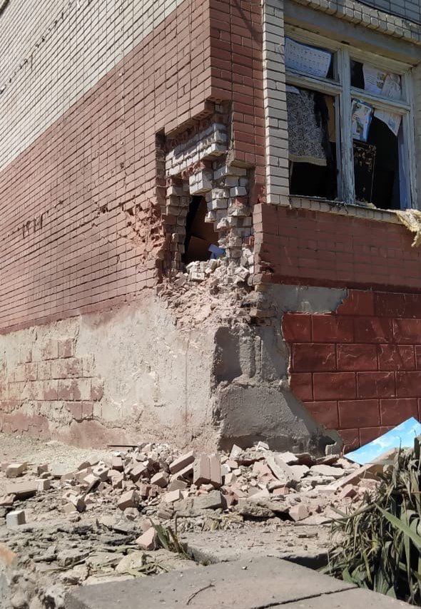 Як зазначається, через обстріл в освітньому закладі пошкоджено стіну та вибито вікна. Також постраждали й навколишні житлові будинки та господарські споруди.