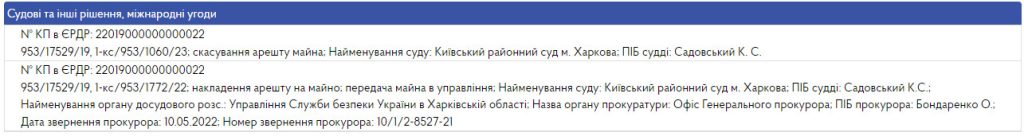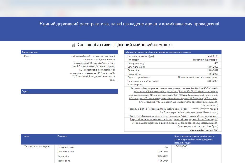 Про це свідчить інформація з Єдиного державного реєстру активів, на які накладено арешт у кримінальному провадженні.