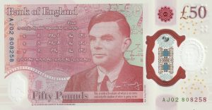 Банкнота присвячена Алану Тюрінгу, видатному математику та піонеру комп’ютерних наук, який зробив неоціненний внесок у перемогу в Другій світовій війні. Крім того, вона відзначає нового Короля Великої Британії.