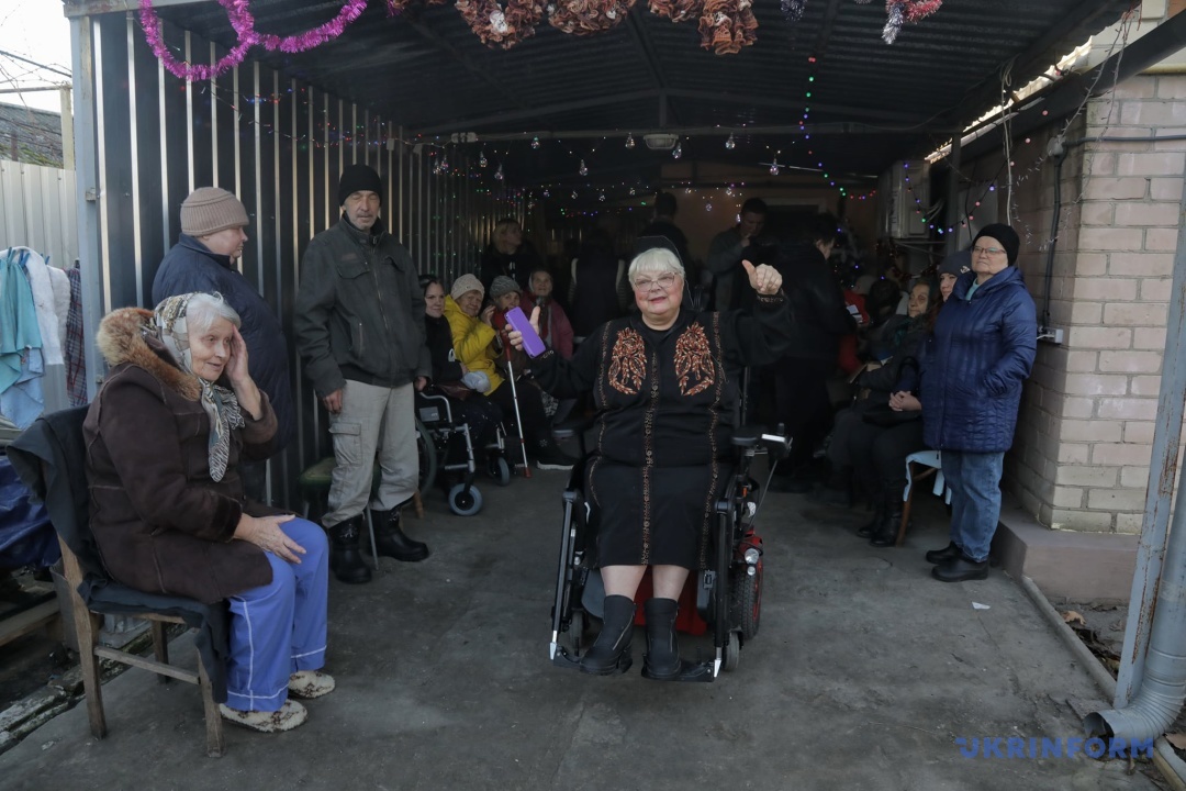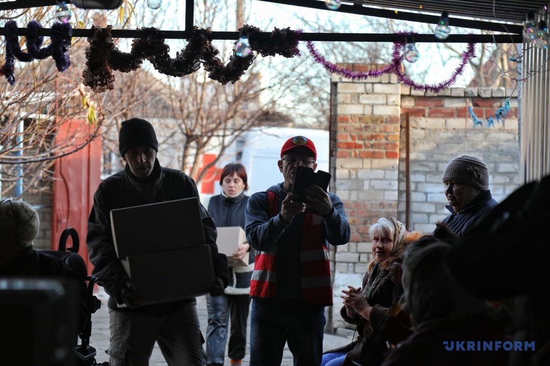- Ялинку штучну поставили діти, але яке там свято… Сподіваємося, що все це скінчиться, скільки ж іще нам ховатися? Вчора от обід гарячий тут отримали, сьогодні ви щось привезли... Але хіба це життя?, – змахує сльози пані Наталя.