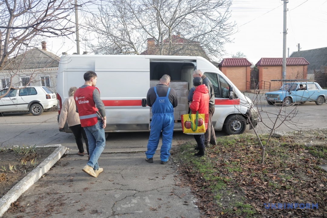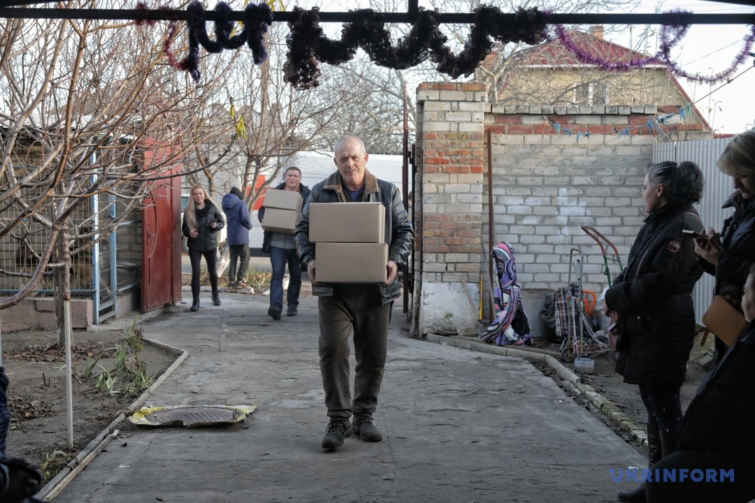 Про свято, що наближається, мешканцям Херсона нагадують лише календар і прикрашена стела на в’їзді. Замість передноворічної метушні в місті закривають фанерою вибиті після «прильотів» вікна та очікують на видачу гуманітарки. Кореспонденти Укрінформу відвідали Херсон разом із волонтерами благодійної організації «Карітас Україна».