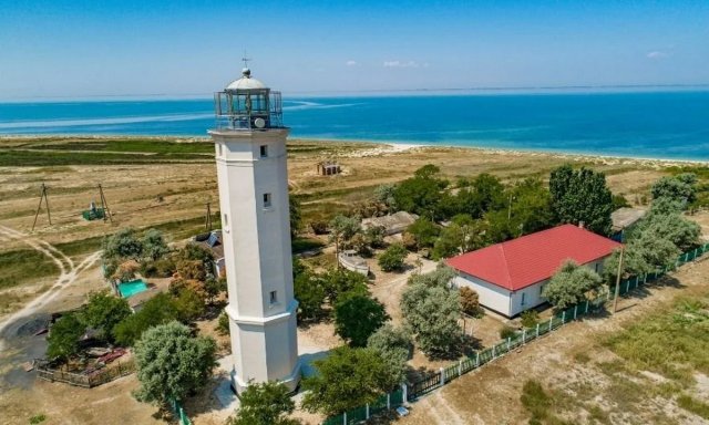 На західному краю Бирючої коси стоїть маяк, збудований у 1878 році.