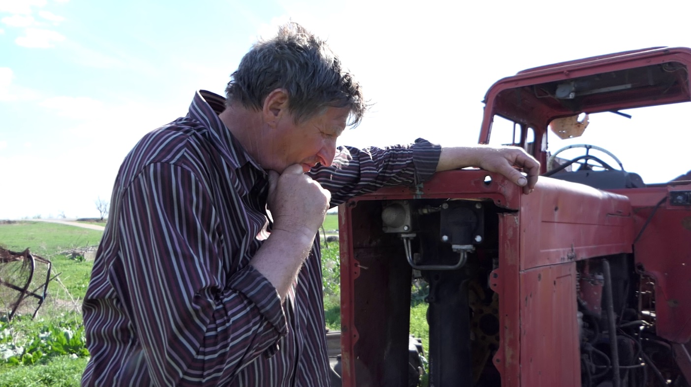 Пан Сергій поруч зі своїм понівеченим трактором. Фото: investigator.org.uaТрохи інші турботи у сім’ї Бабіїв, що вже добре знайомі нашим кореспондентам. Коли ми бачились восени 2023 року, голова родини ремонтував зруйновану росіянами літню кухню, збираючись там зимувати. Зараз Бабії вже отримали компенсацію за зруйновану оселю, але відновлювати її не поспішають – кажуть, побоюються можливих прильотів від росіян, хоча Білогірка і знаходиться за кілька десятків кілометрів від лінії фронту. Олександр допомагає місцевим фермерам розміновувати їхні поля, тож має більш-менш стабільний заробіток. Далі на меті у них розширення господарства, зокрема родина хоче зайнятися розведенням качок та курей.