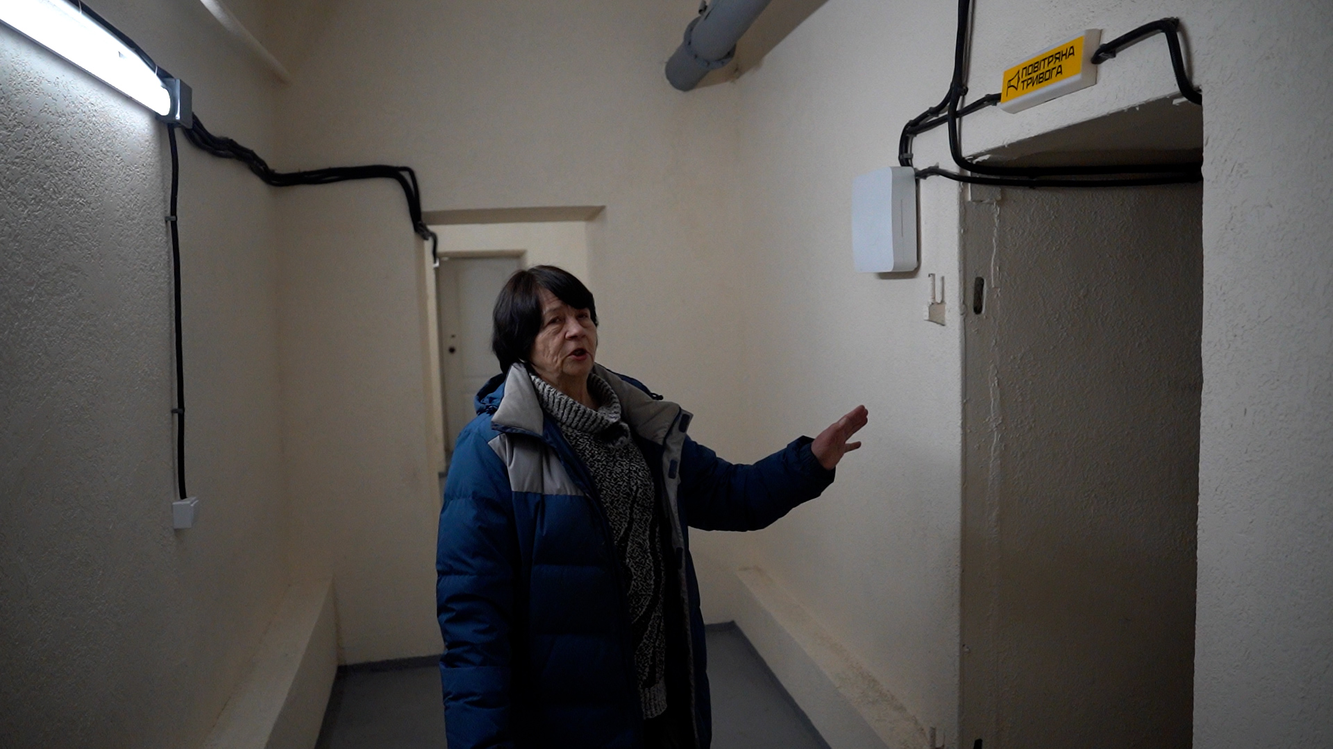 Підвальне приміщення будинку ще за радянських часів спроєктували як бомбосховище. Торік на прохання жильців там облаштували укриття. Його, після ремонту за державний кошт, нашим журналістам показали мешканці будинку Ксенія Михайлівна та подружжя Тетяна й Олег. Вони після “прильоту” на прибудинкову територію перебралися жити до підвалу.