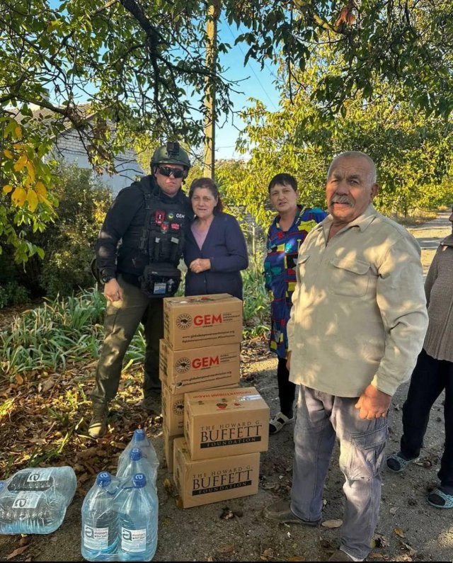 Волонтери Global Empowerment Mission у партнерстві з Howard G. BUFFETT Foundation доставили питну воду та продуктові набори до селища Понятівка.