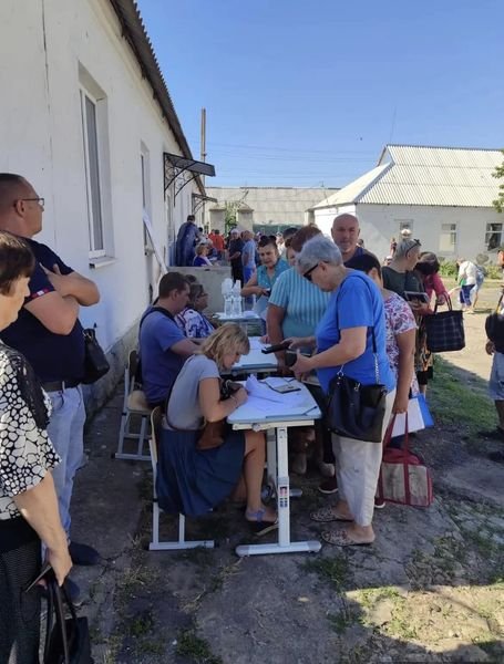 Попри небезпеку людям доставили продуктові набори від Всесвітньої продовольчої програми ООН. Допомогу отримали мешканці сіл Високе Матросівка, Таврійське, Львівські Отруби.