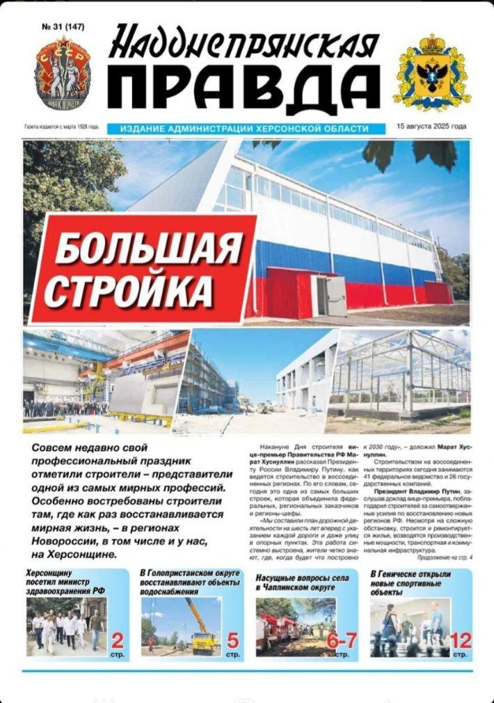 Продовжують використовувати окупанти і перекладену на російську мову назву іншої колись відомої газети. Їх брехливу підробку «Надднепрянская правда», як і раніше, можна знайти і безкоштовно взяти в окупаційних адміністраціях, магазинах та просто на вулицях у всіх «муніципальних округах». Богдан СТРАЖАК, Новий день