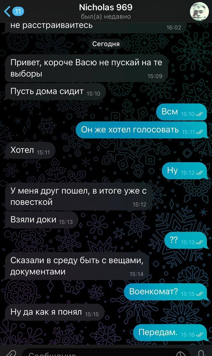 У соцмережах місцеві жителі публікують попередження про те, щоб чоловіки не ходили на голосування. Тому що можуть бути призваними до лав окупаційної армії.«У меня друг пошел, в итоге уже с повесткой, - пише користувач Nicholas 989. - Сказалі в среду быть с вещами, документами».