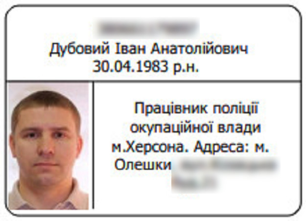 Дубовий, колаборанти та російські окупанти обшукували співробітників поліції. У правоохоронців вилучалась зброя і боєприпаси.