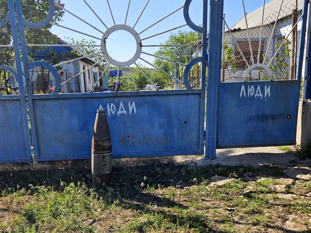 По всій громаді – стрічки та таблички, що попереджають про мінну небезпеку. Узбережжя Інгульця небезпечне, бо міни – й у воді, й на березі. Місцеві кажуть, що буває мінування і в три ряди. Поля, посадки, ліски – люди тепер лише згадують із сумом, як їм колись радили розвивати тут зелений туризм. Те саме – зі зрошенням: до води нині не підійти.
