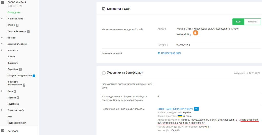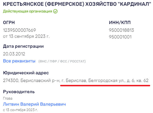 Але при перереєстрації “Кардинала” його адресою вказали адресу Валерія Літвіна у Бериславі.