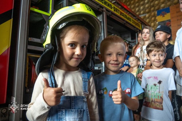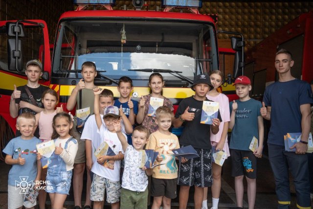 Діти-переселенці з Херсонщини відвідали пожежно-рятувальну частину у Києві