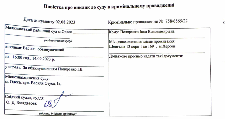 Інну Поляренко, яка організовувала невизнаний референдум росіян в окупованому Херсоні у 2022 році, викликають до Одеського суду, куди вона систематично не з’являється.
