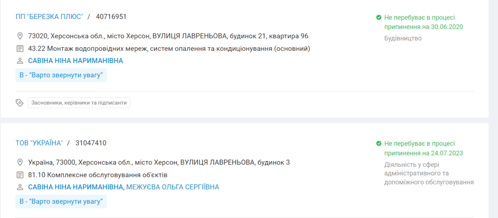 Також Савіна очолила«виборчу комісію №303» під час фейкового референдуму росіян у Херсоні.