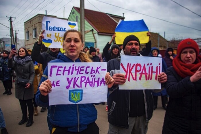 Проукраїнський мітинг у Генічеську в перші дні російського вторгнення
