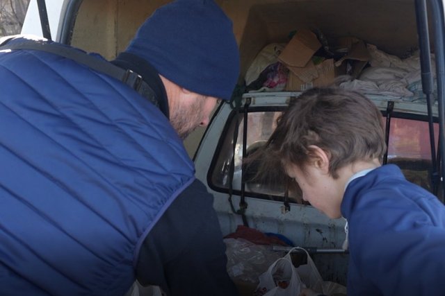 Херсонці Дмитро Бондаренко і 12-річний Микита Шентов обʼєдналися і почали волонтерити. Вони допомагають місцевим жителям, які не виходять зі своїх квартир. У кожного свої обовʼязки: Микита сортує продукти, а Дмитро їх розвозить.