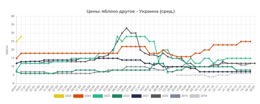 Більшість виробників зараз реалізують яблука, які частково втратили свої якісні характеристики через тривале зберігання. Водночас яблука вищої якості переважно йдуть на експорт. Деякі виробники притримують якісну продукцію, плануючи почати її реалізацію лише навесні.