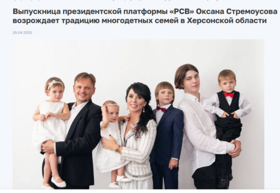 “Участь у програмі “Жінка-лідер” стала для Оксани важливим етапом особистісного зростання. Вона запустила соціальний проект «Майстерня сімейних традицій», спрямований на просування сімейних цінностей та багатодітності у школах Херсонської області. У рамках проекту старшокласники беруть участь у лекціях, кінопоказах та відкритих обговореннях, стаючи наставниками для своїх однолітків”, – зазначають росіяни.