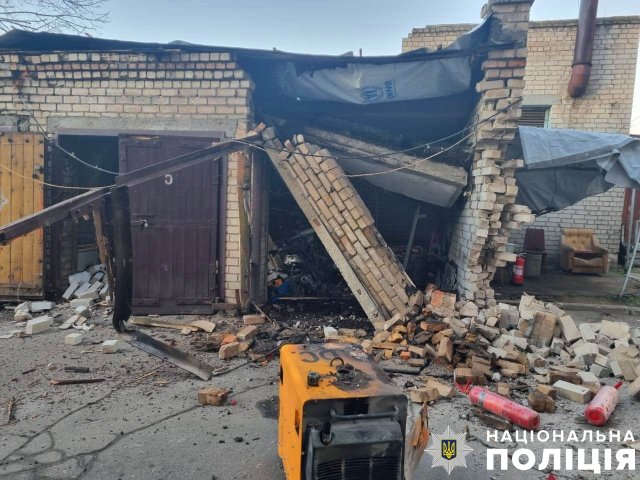 Через атаки дронів на Новоберислав пошкоджено два гаражі та дві господарські споруди.