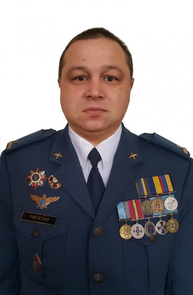 Його побратим – Роман Чехун був серед таких молодших колег. Він народився 2 липня 1976 року у родині військових. Після школи вступив до Харківського інституту льотчиків Військово-Повітряних Сил України і вивчився на штурмана. У 2004 році проходив службу у Старокостянтинові, де і познайомився з Валерієм Ошкалом. У 2014 році під час АТО Роман виконував бойові вильоти на Луганщині та Донеччині. У жовтні 2021 року у званні майора звільнився з військової служби. Та вже за чотири місяці почалося широкомасштабне вторгнення росії в Україну, і майор Чехун повернувся у свою бригаду.12 березня 2022 року він разом з Валерієм Ошкалом отримав завдання зі знищення колони ворога на Херсонщині. Український бомбардувальник впорався із задачею, уразивши чималу кількість ворожої техніки, але в цей час у небі з’явилися два літаки противника. Розпочався повітряний бій. У небі біля села Біляївка ворожа ракета поцілила в український Су-24М, і він впав. Пілот і штурман не встигли катапультуватися.