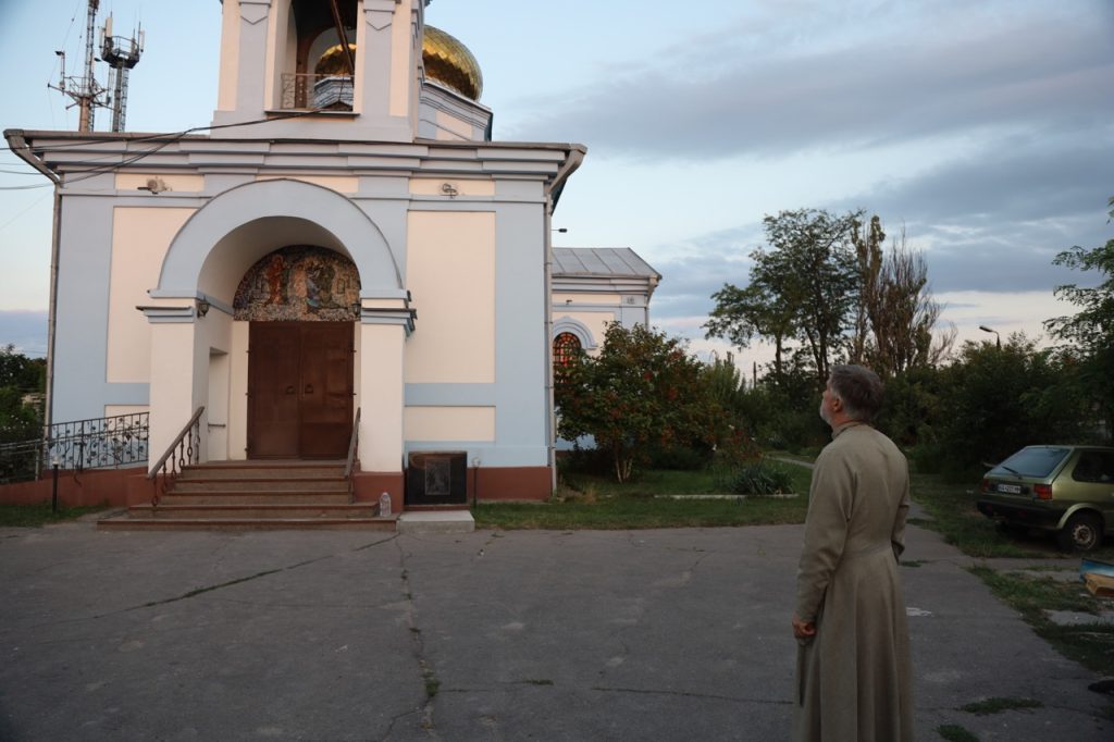Я якийсь час вдома сидів, чекав, що буде. Правда, в той же час, в перший день війни настоятель місцевого храму Олешківського, теж з ПЦУ, подзвонив і каже, що вони вже в Умані. Мама якраз ходила в той храм. Каже: “Ви мене не підміните, ви ж там живете?” Якось, чесно кажучи, мені дивно було. Думав, Господи, ще війна тільки почалася, тільки по радіо почули, а він вже десь там далеко в Умані. Потім думаю, а як парафіяни? І взагалі як це має бути? І ніби моє рідне місто, я народився в Олешках взагалі. І ніби архієрей. І залишити отак. Ну ясно, що я погодився. У принципі всі 508 днів, по суті, я там регулярно служив.