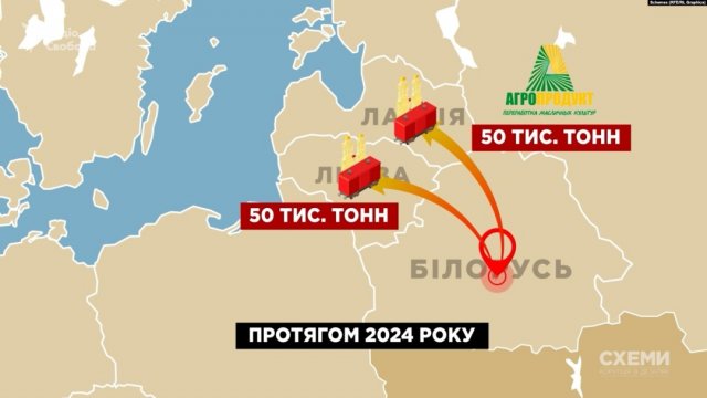 У розслідуванні "Схем" (проєкт Радіо Свобода), яке журналісти підготували у співпраці з литовськими, латвійськими та білоруськими партнерами, ідеться, що одна з цих країн – Литва, де з літа 2024 року діє заборона на ввезення білоруських продуктів харчування, в тому числі ріпакової олії.