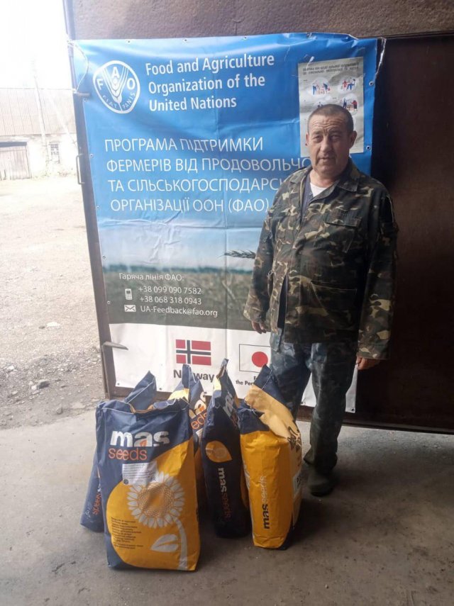Також 145 сільгоспвиробників отримали насіння соняшника і ще 8 отримають найближчими днями. Загалом роздадуть 1000 мішків. Ця програма реалізується за фінансової підтримки урядів Норвегії та Японії.