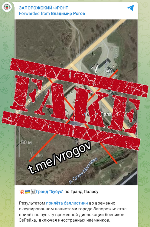 Для цього орка брехати про влучання в цивільні об’єкти звична справа. Так, 3 вересня ударом російськими балістичними ракетами було зруйноване приміщення готелю «Гранд-Палас» в Запоріжжі.