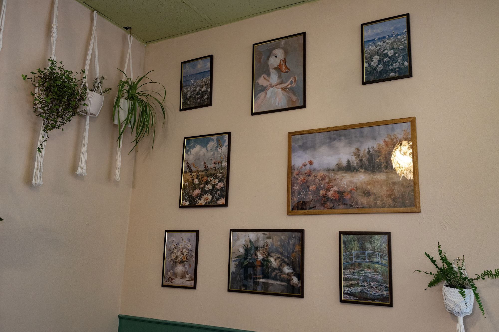 Оформлення кафе Анна продумувала особисто. В інтер’єрі багато зелені, рослин і картин. Декор на стінах вона створювала власноруч – із гіпсу ліпила фігури, плела сітку для плюща. За її словами, хотілося зробити простір не лише функціональним, а й естетично привабливим, щоб відвідувачі могли відпочити в атмосфері спокою.