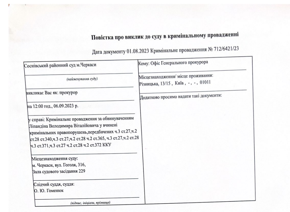 Повістка Ліпандіну