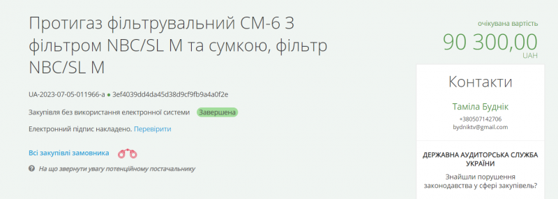 Про це у йдеться закупівлях, опублікованих на Прозорро.