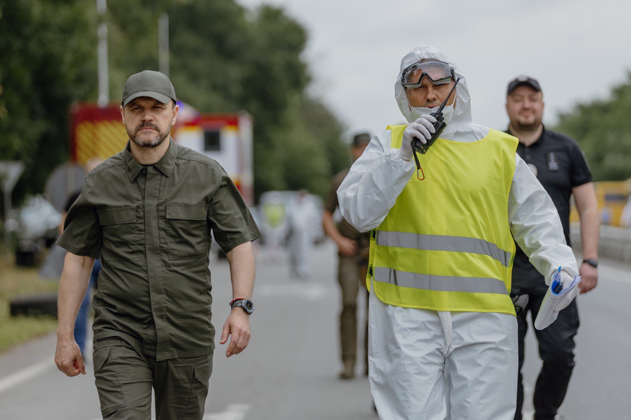 Очільник МВС поінформував, що у межах тренувальних заходів розгорнуті контрольно-санітарні пости для перевірки транспорту, який виїжджає з населених пунктів. Тут є техніка для замірів радіаційного фону, також здійснюється огляд та обробка автомобілів і евакуйованих людей.