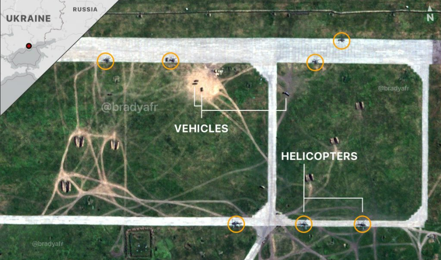 Військова техніка та авіація РФ в аеропорту Бердянська