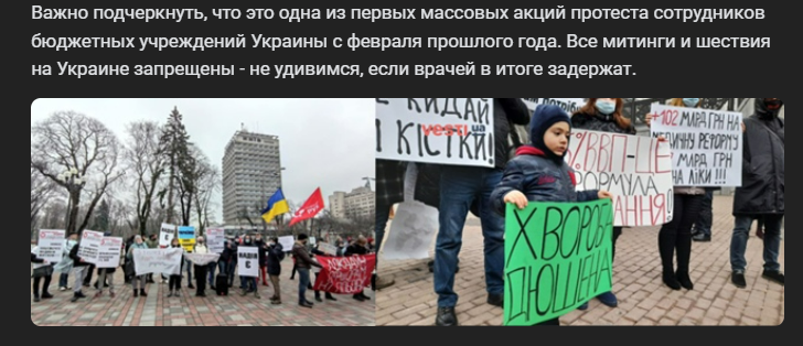 Цікавими є також фейки про нібито бунт херсонських лікарів через те, що їм місяцями не виплачують заробітну плату. За словами росіян, херсонські лікарні заповнені пораненими українськими військовими, яких місцеві «ескулапи» відмовляються лікувати без виплати заборгованості. Звичайно, бунт лікарів, як і їх акція протесту – це «вкиди» росіян для дестабілізації ситуації в регіоні. Вони навіть не надто напружувалися, візуалізуючи свій фейк, розмістивши під публікацією фото з якоїсь акції поблизу Верховної Ради України, яка до того ж відбулася взимку.