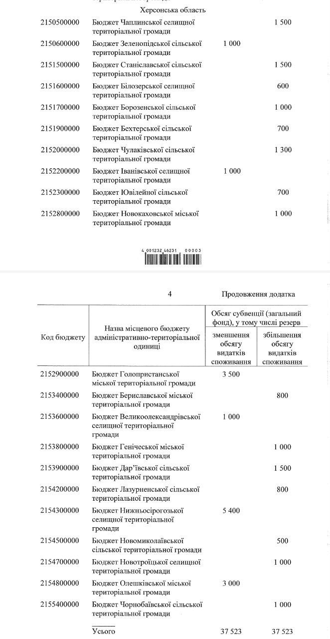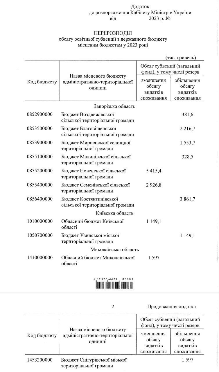 Таким чином освітню субвенцію обсягом 37,5 мільйона гривень перерозподілять між місцевими бюджетами семи областей України: Миколаївською, Херсонською, Запорізькою, Київською, Полтавською, Сумською, Харківською.