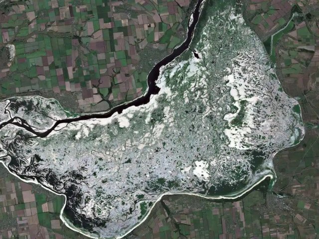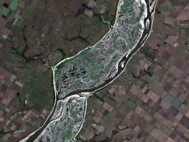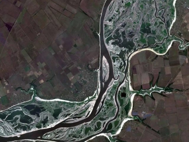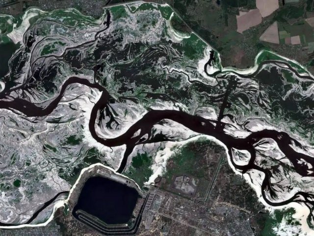 У мережі з’явились супутникові знімки Каховського водосховища та осушених територій Херсонщини станом на початок вересня 2023 року.На знімках можна побачити, що річка Дніпро повернулась до свого старого русла, а території колишнього водосховища поступово вкриваються рослинами та перетворюються на долину.