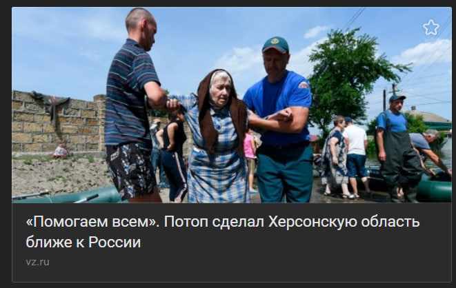 Проваливши евакуацію населення з підтоплених територій, росіяни звинуватили в цьому українську сторону. Російські медіа стверджують, внаслідок не скоординованих дій української влади, на правобережжі Херсонщини загинуло кілька десятків мирних жителів. Однак ніяких доказів цьому не наводиться. Водночас, за даними Херсонської обласної військової адміністрації, під час рятувальної операції у Херсоні справді загинуло близько 10 людей, та більшість з них – через обстріли росіянами місць евакуації, чому є документальні підтвердження. Паспорт або смерть!
