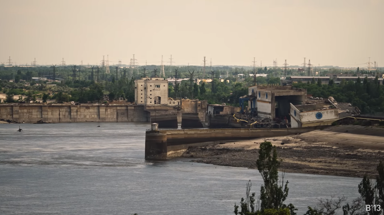 Зруйнована російським окупантами Каховська ГЕС, червень 2023 року. Фото: Youtube #BABYLON’13