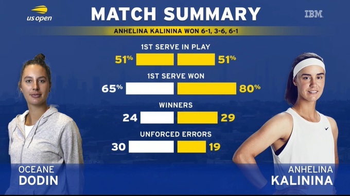Ангеліна Калініна (Україна) – Осеан Доден (Франція) – 6:1, 3:6, 6:1
