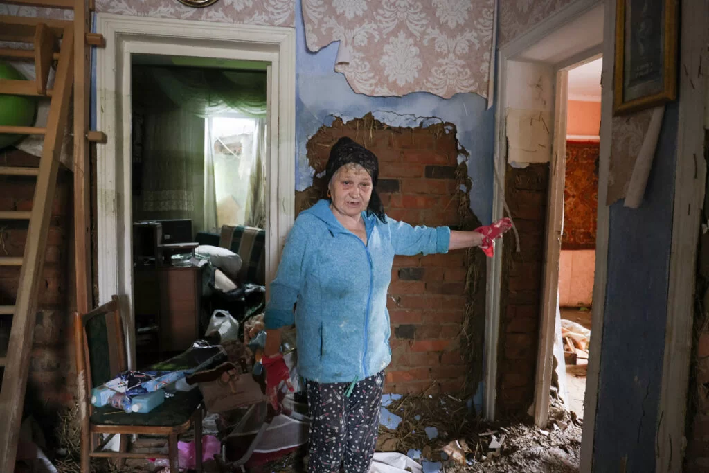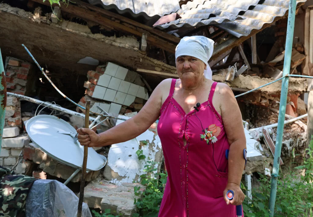 Жителька Благодатівки біля зруйнованого будинку.Фото – Іван Антипенко