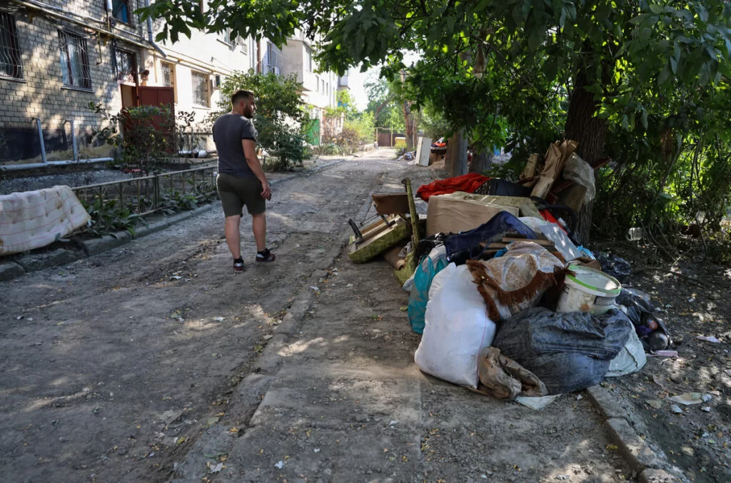 Херсон, район річкового порту. Люди виносять меблі й одяг на вулицю.