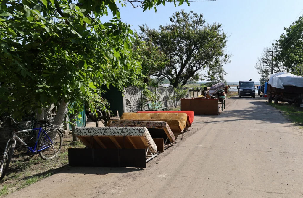 Херсонці виносять із помешкань меблі та інші непридатні для вжитку речі після підтоплення.Фото – Іван Антипенко