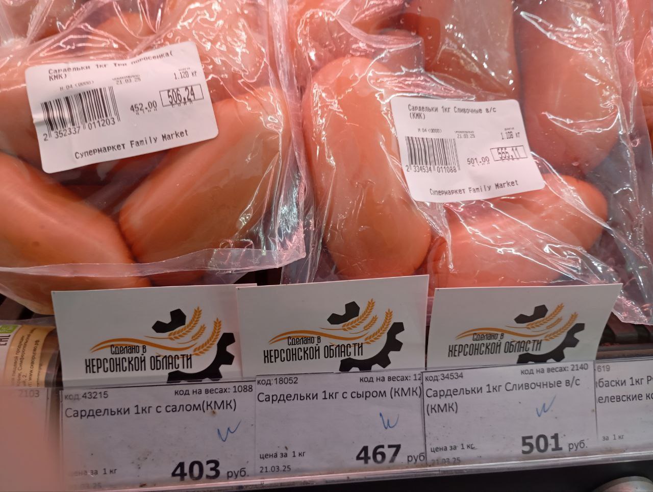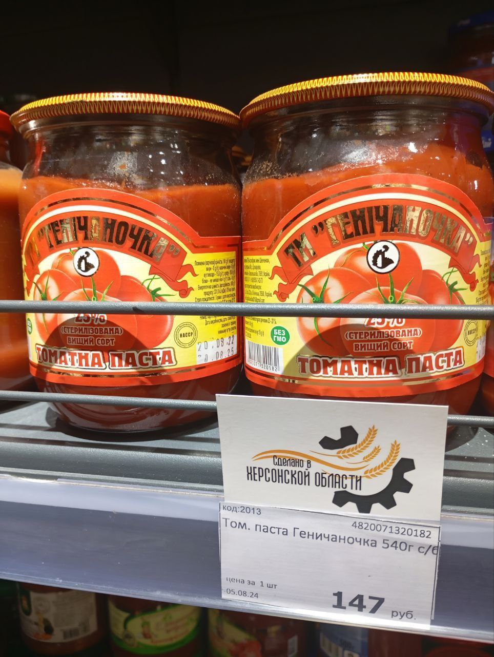Окупаційне міністерство промисловості і торгівлі Херсонської області вирішило «популяризувати продукцію місцевих пропагандистів», якої на полицях продуктових крамниць залишилось вкрай мало. Але окупанти дещо таки знайшли і помітили його цінниками з написом «Зроблено у Херсонській області». Знайшли чай «Трави Азова», томатну пасту «Генічаночка», каховські ковбаси, новотроїцькі сири і овочі. «Тепер покупці зможуть свідомо підтримувати виробників регіону, вибираючи продукцію з цінниками якості», – повідомило «міністерство». Хоча вони могли це робити і раніше, надаючи перевагу місцевим продуктам саме через якість – російські їсти майже неможливо. Однак продуктів цих з кожним днем стає все менше. Через високі ціни ще можна знайти на полицях вкрадені зі складів знищеного окупантами заводу «Чумак» у Каховці соуси і макаронні вироби. Та ж томатна паста «Генічаночка» – це також залишки, бо Генічеська харчосмакова фабрика, яка її випускала, не працює з 2022 року. На ній, до речі, також випускалась мінеральна вода і соняшникова олія. Овочі через відсутність поливу також вирощувати все важче. Майже знищивши харчову промисловість Херсонщини, окупанти привозять продукти з окупованого Криму і Росії. Звісно, що вони дорожчі за місцеві. Хліб, наприклад, везуть з окупованого Сімферополя, мариновані огірки і помідори – з Кубані, а рибні консерви – взагалі з Калінінградської області. Богдан СТРАЖАК, Новий день